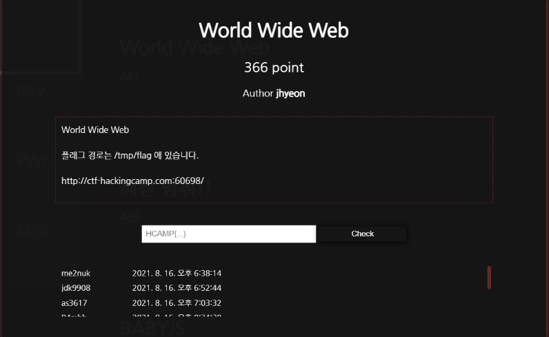 문제 설명에서 플래그가 있다고 말한 /tmp/flag 파일을