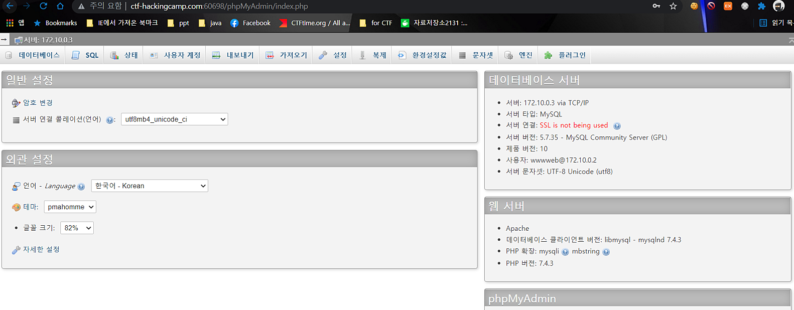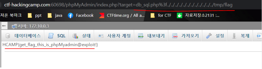 phpmyadmin 의 취약점과 관련된 문제이다.