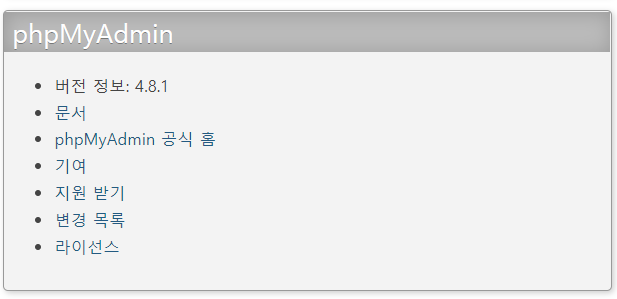 주소창에 /phpMyAdmin 을 입력해서 들어가보면