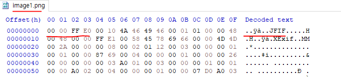 파일 맨 앞 부분이 00 00 FF E0 로 시작하는데