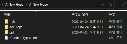 ppt 파일은 확장자를 .zip 으로 바꿔주면
