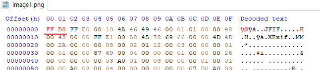 JPG 파일은 맨앞이 FF D8 FF E0 로 시작하는것이 특징이다.