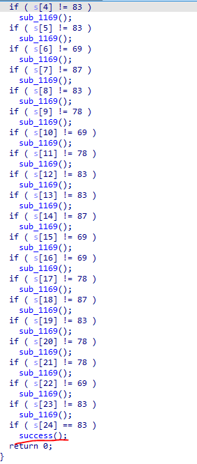 sub_1169() 은 아까 봤던 실패문구이다.