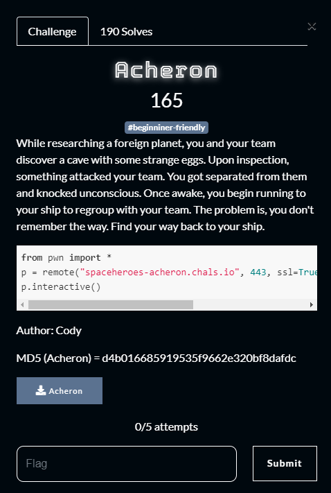 문제에서 주어진 바이너리 파일인 Acheron 을 IDA 로 열어본다.