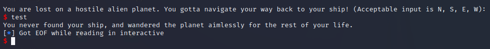 우주선을 찾지 못했다면서 interactive 가 꺼져버린다.
