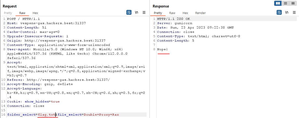 file_select 에 flag.txt 를 써서 요청 패킷을 보냈더니
