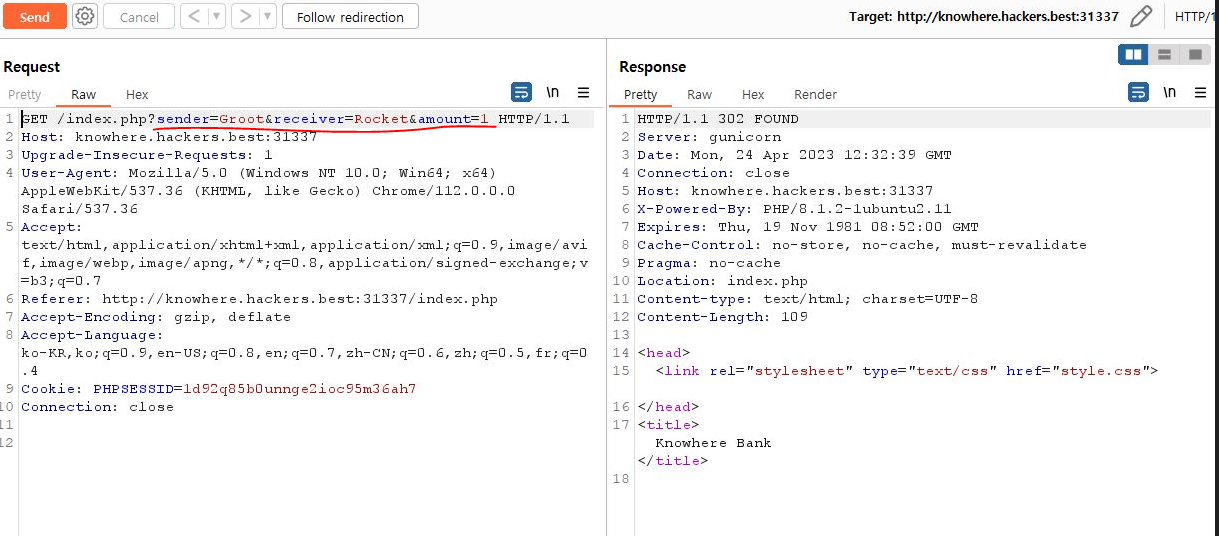 Burp Suite 를 이용해 돈을 보낼때 패킷을 확인해봤다.