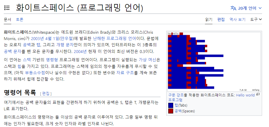 공백을 이용해서 만든 프로그래밍 언어이다.