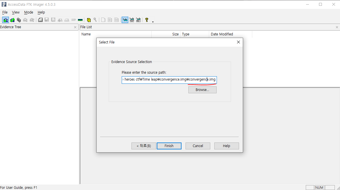 FTK Imager 를 실행시킨 후