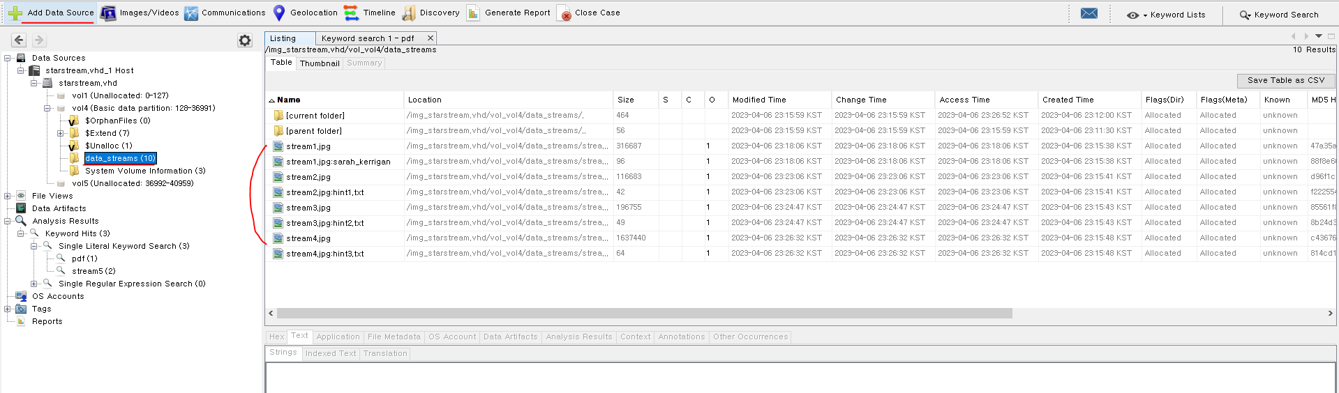 이건 ADS 영역에 숨겨진 데이터들이다.
