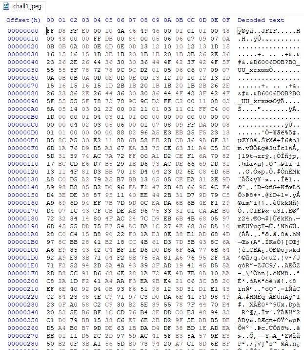 서론이 길었는데 HxD로 jpeg 파일을 열어서 가장 먼저 해볼일은