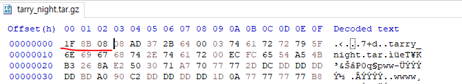 .gz 파일은 파일 시그니처가 1F 8B 08 이다.