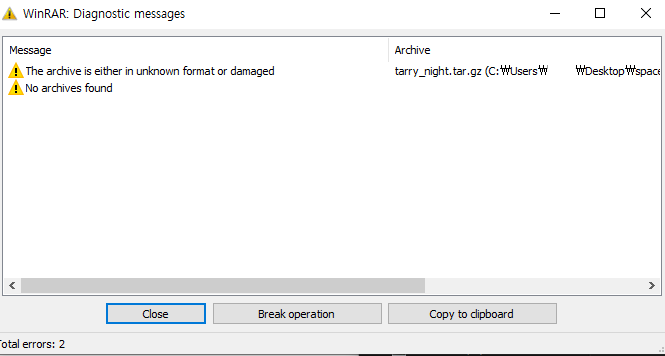 뭔가 잘못됐는지 압축이 풀리지 않았다.