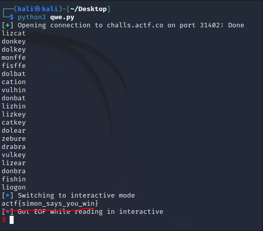 다시한번 monkey 와 cat 에 대한걸 보내라는 문구가 출력되었다.