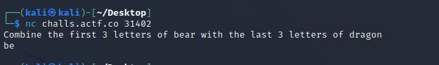 이번엔 bear 의 앞 세글자, dragon 의 뒤 세글자를 합하라고 한다.