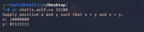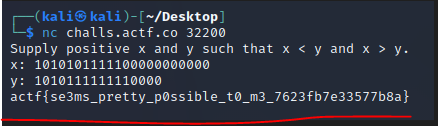 if len(fake_psi(one_encoding(x, 64), zero_encoding(y, 64))) == 0 and x > y and x > 0 and y > 0: