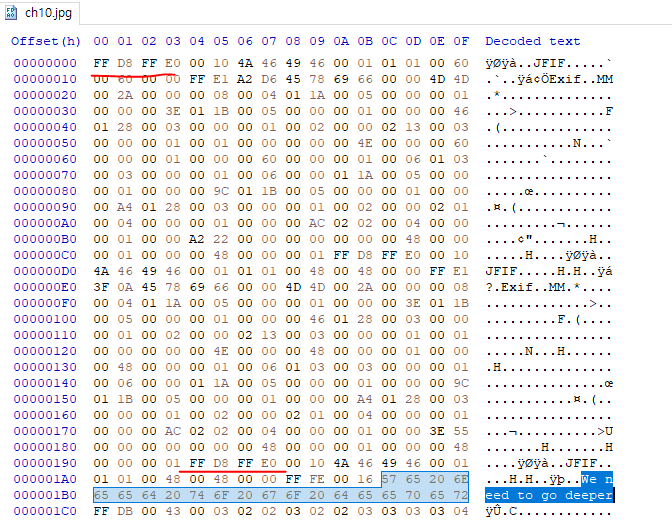 잠시 뒤에 다시한번 시그니처인 FF D8 FF E0 가 나온 뒤