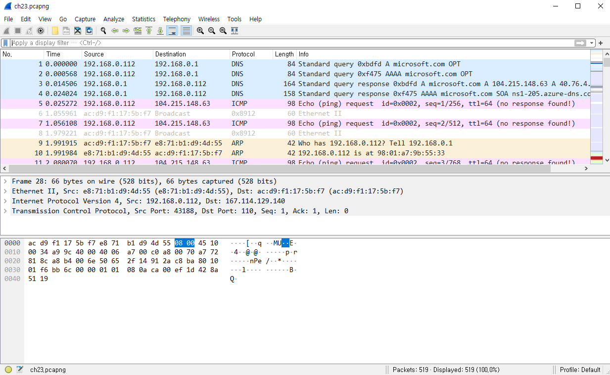 문제에서 주어지는 것은 ch23.pcapng 파일이다.