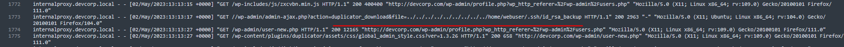 ../../../../../home/webuser/.ssh/id_rsa_backup 파일 로그를 찾을 수 있었다.