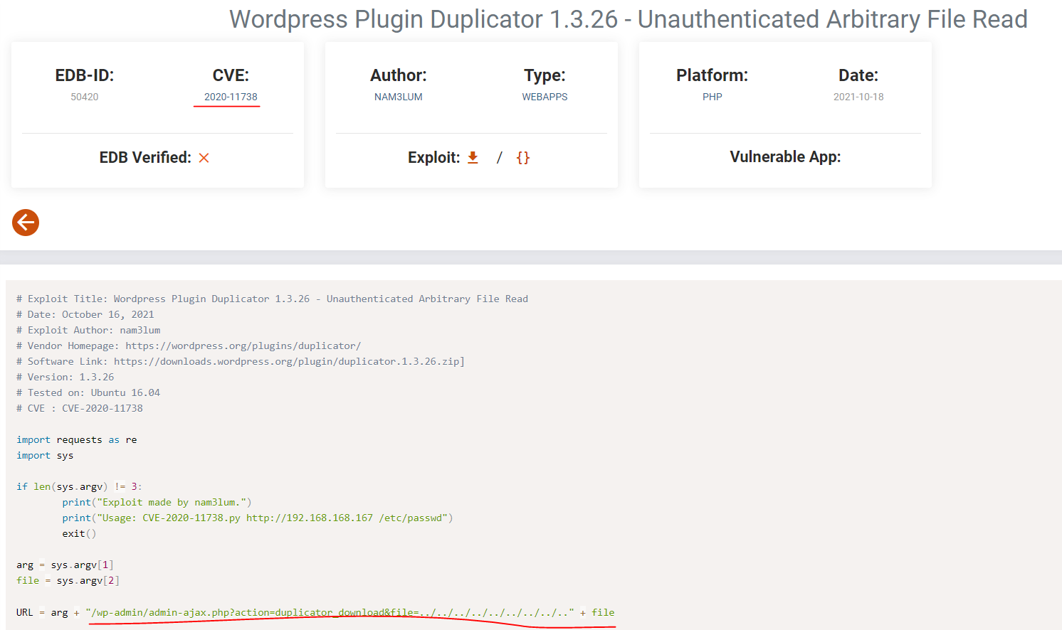 exploit 코드와 함께 CVE 넘버가 제공된다.