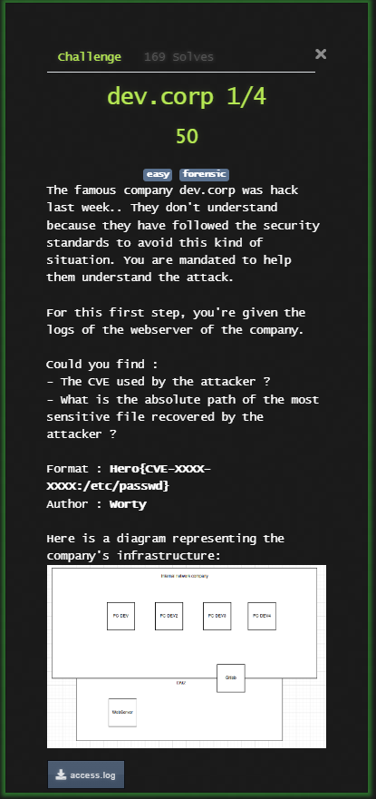 웹 엑세스 로그와 관련된 포렌식 문제이다.