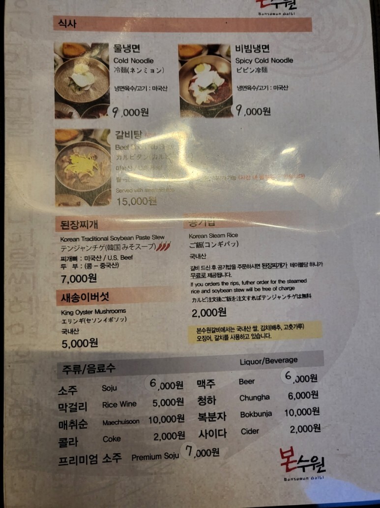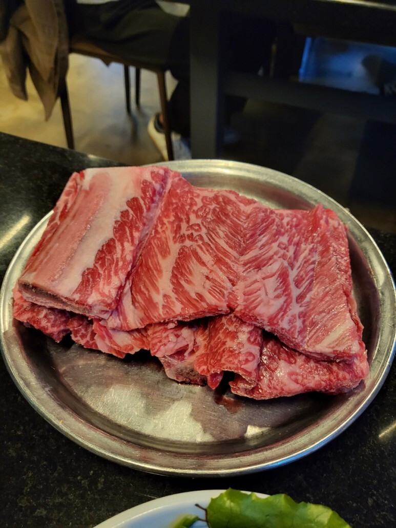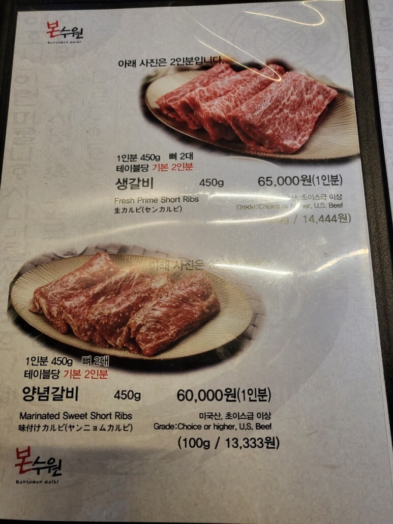 메뉴를 보고 생갈비 1인분이 65,000원이라 당황했다.
