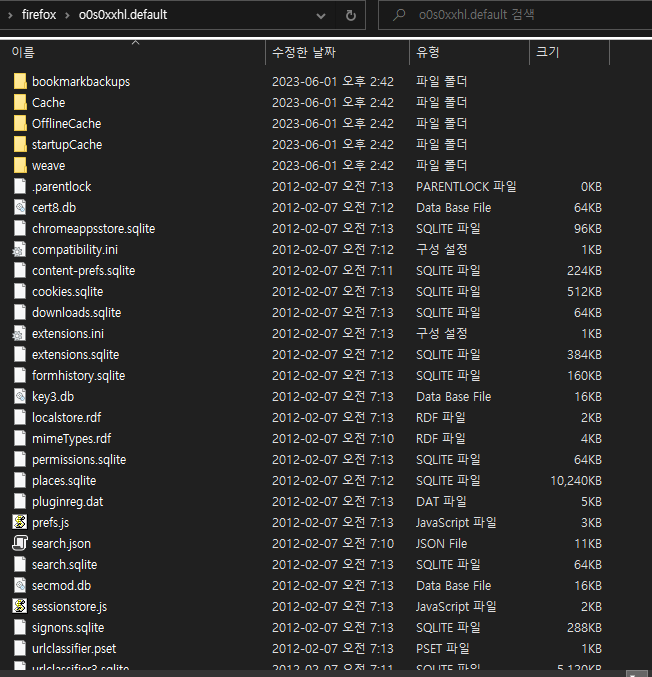 이렇게 firefox 라는 폴더를 찾을 수 있다.