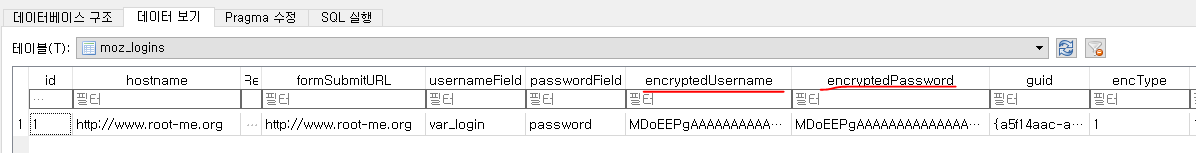 moz_logins 테이블을 확인해보면