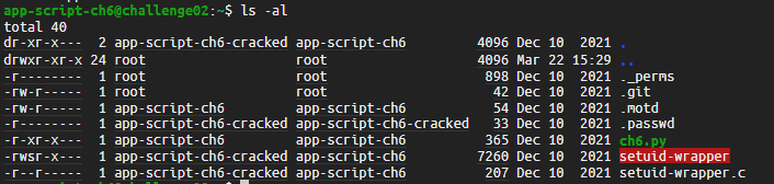 .passwd 와 ch6.py, setuid-wrapper 파일이 보인다.