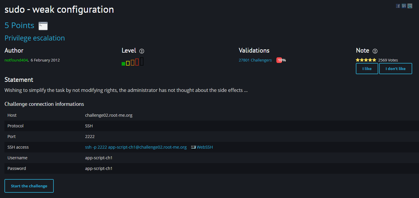 Root Me 에서 제공하는 sudo 명령어 관련한 문제