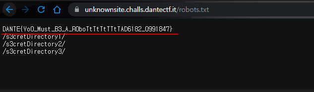 | [DanteCTF] Unknown Site 1 - 웹해킹 / robots.txt (99) | 2023.06.13 |