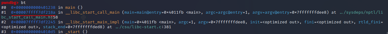 ret 주소인 0x00007ffff7df218a 가 중간쯤에 보인다.