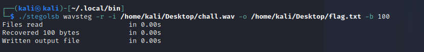 stegolsb wavsteg -r -i <wav 파일 경로> -o <결과 파일 경로> -b <바이트 수>