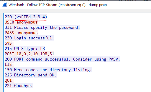 vsFTPd 와 2.3.4 가 해당하는 값이다.