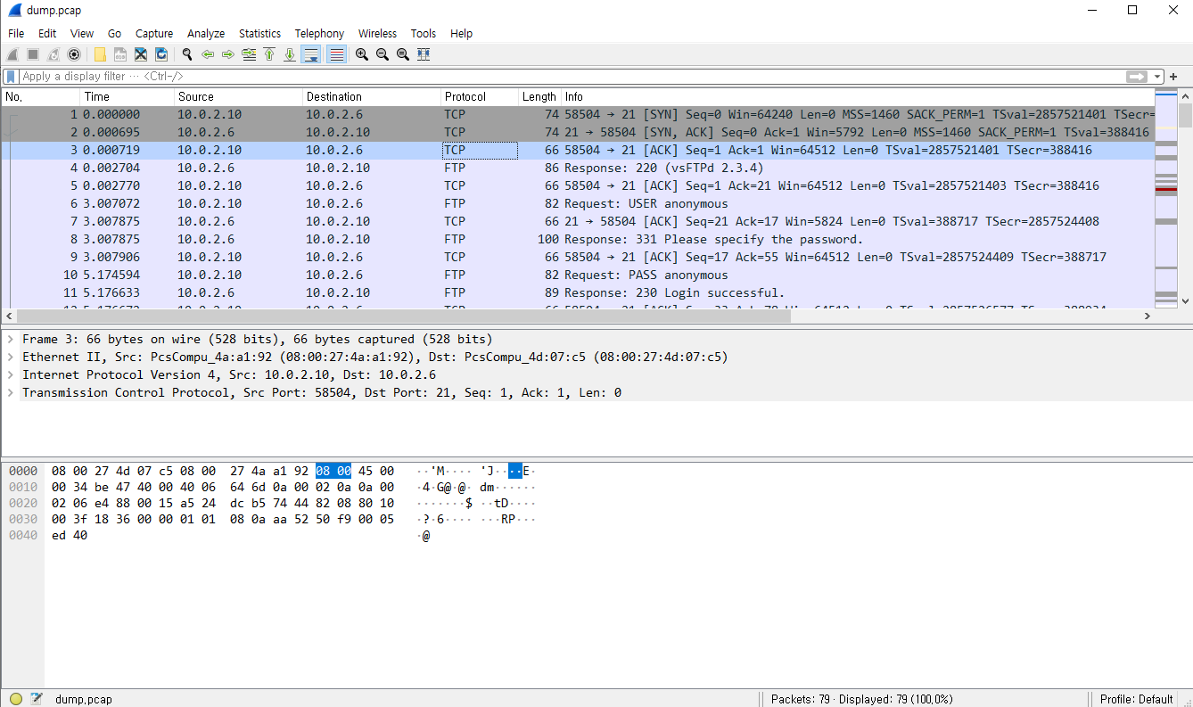 .pcap 파일은 Wireshark 라는 도구로 열어볼 수 있다.