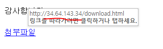 34.64.143.34 주소의 download.html 접속 흔적을 찾을 수 있었다.