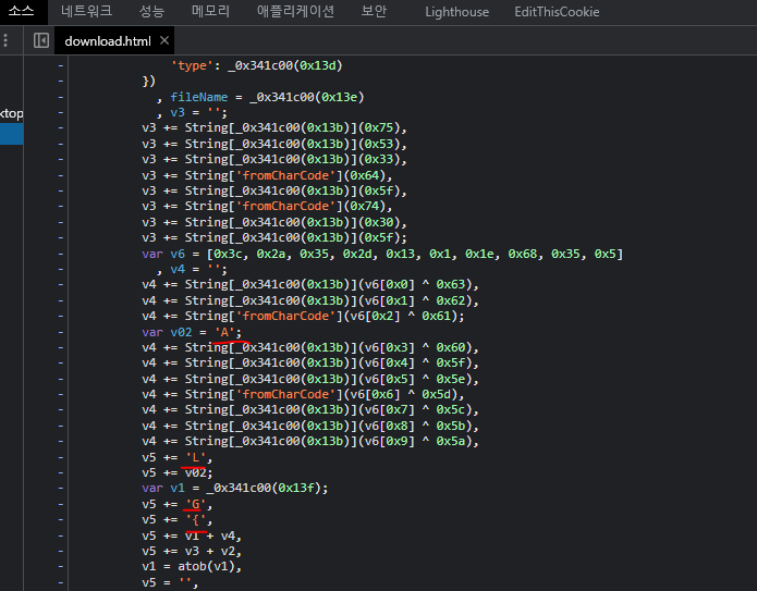 마지막 부분에서 v5 변수에 뭔가 저장하는것 같아