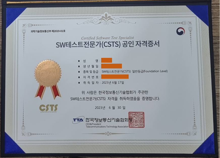 한국정보통신기술협회(TTA) 에서 주관하는 SW 테스트 관련 자격증이다.