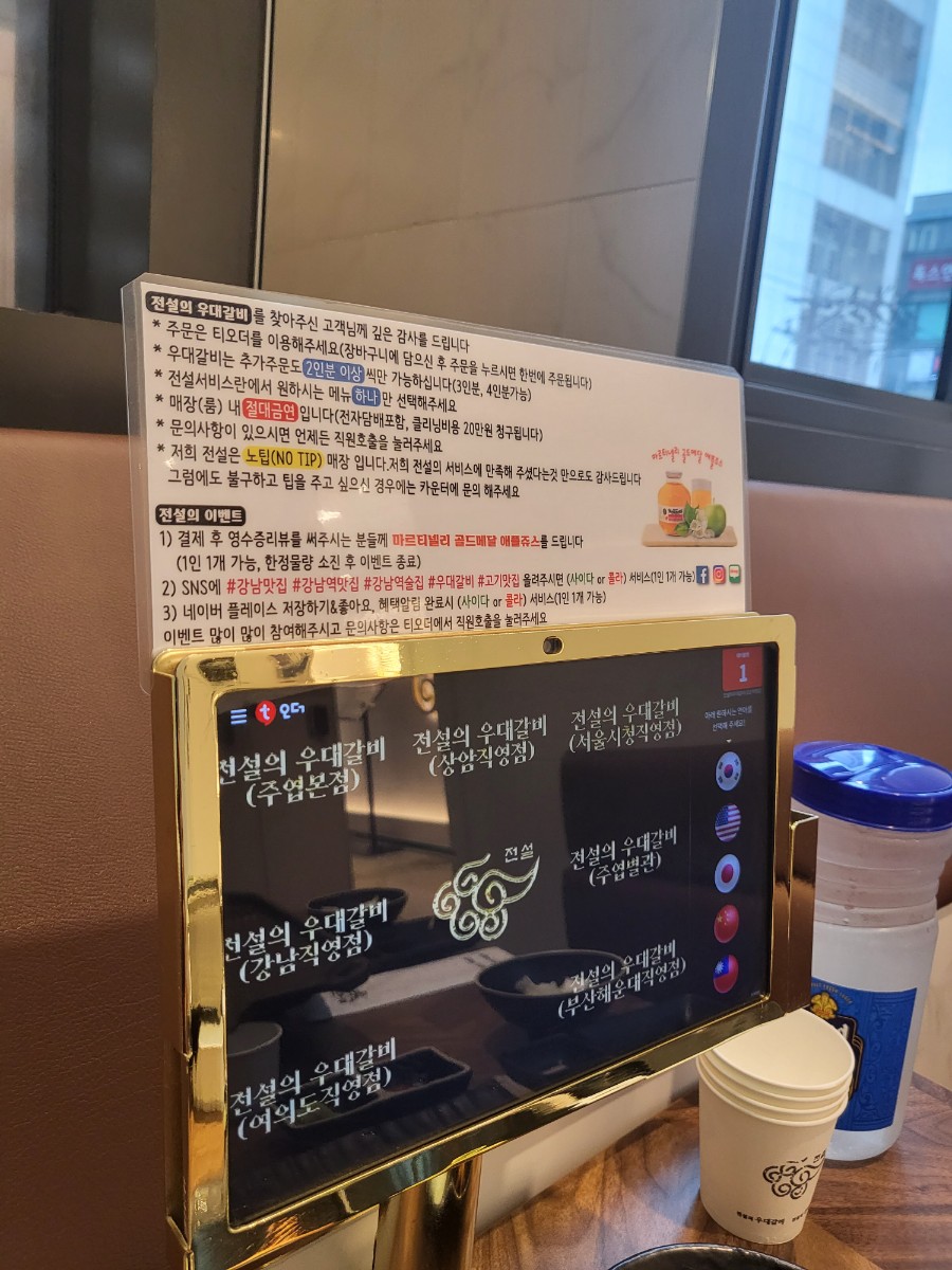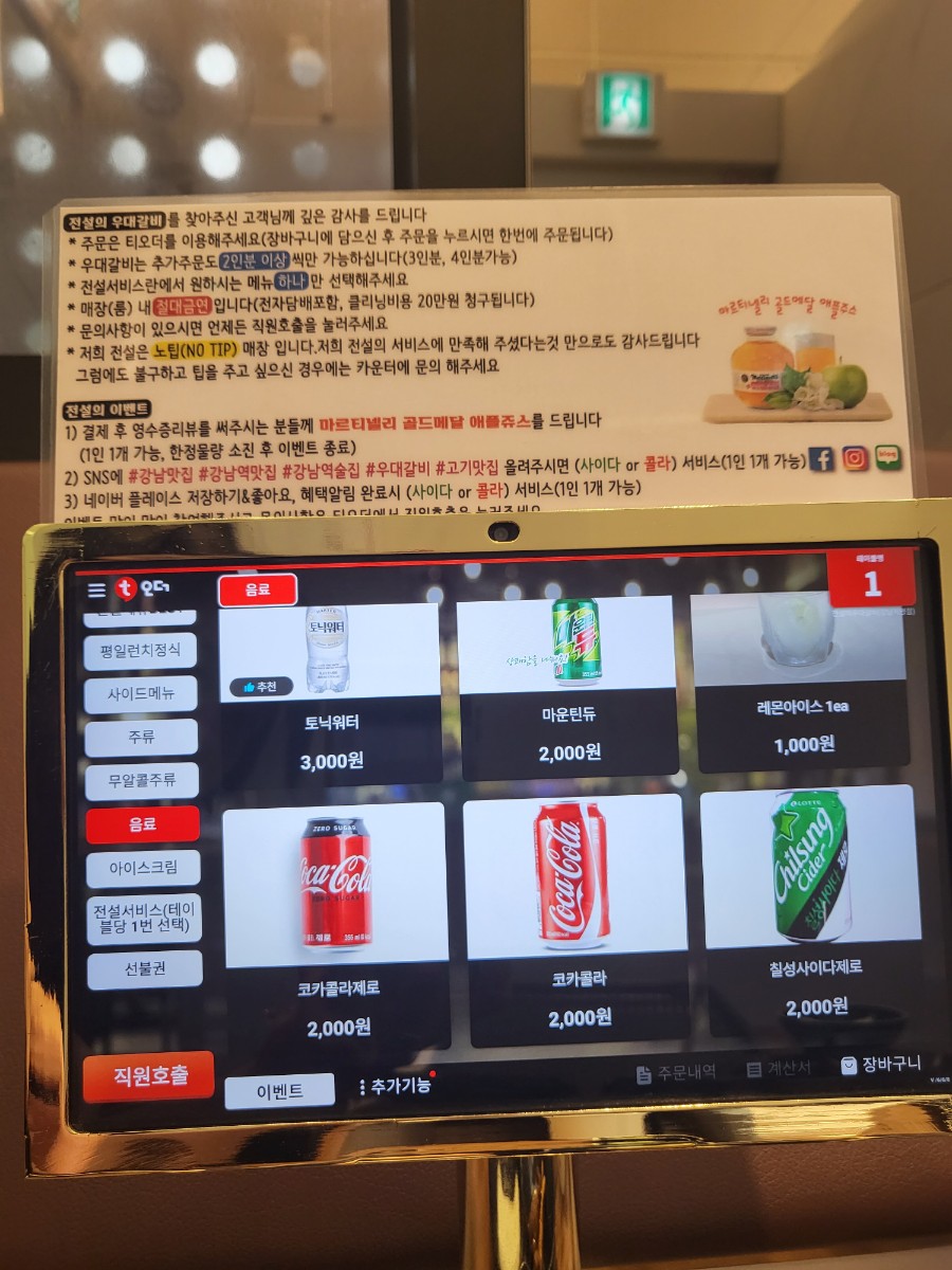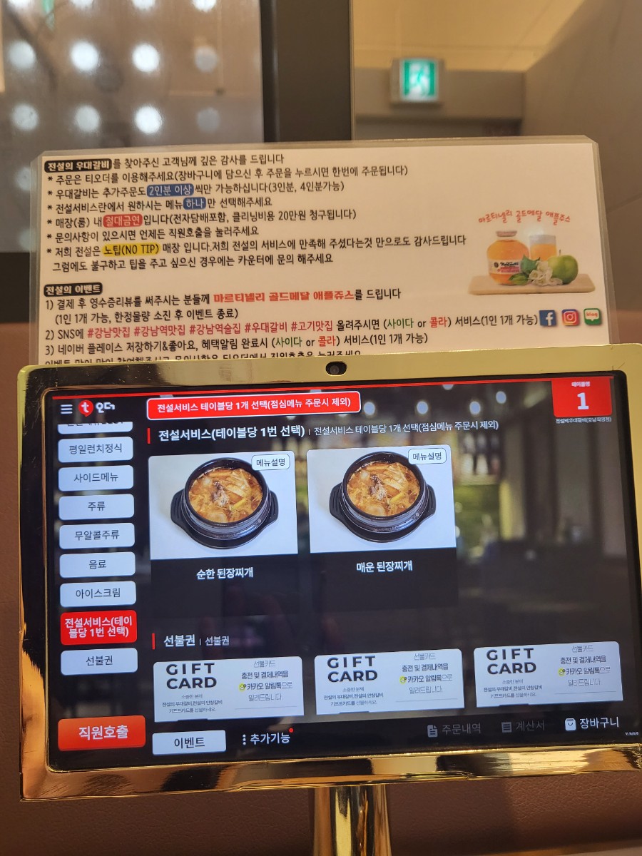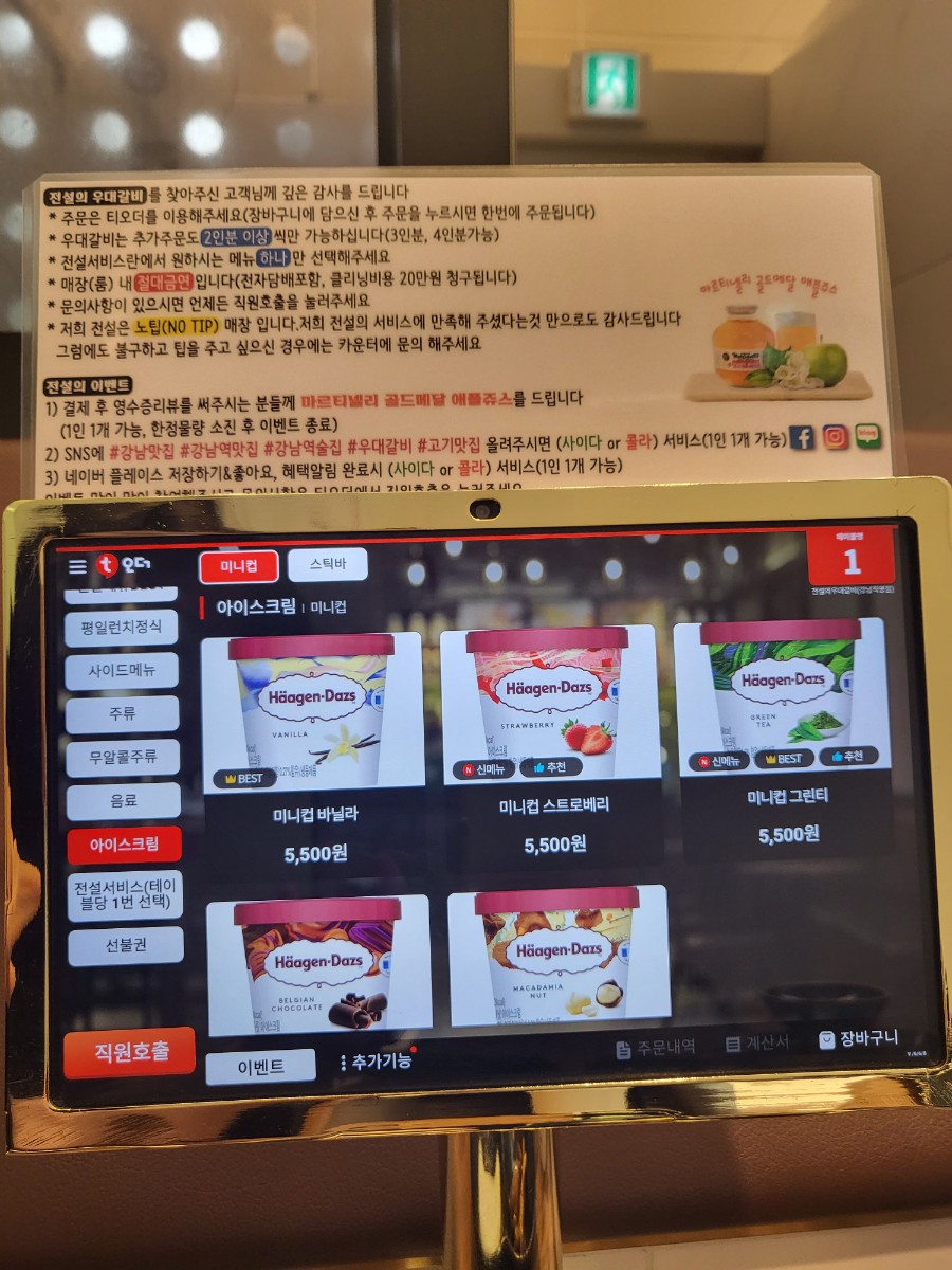 아래는 테이블마다 비치된 키오스크와 메뉴 사진이다.