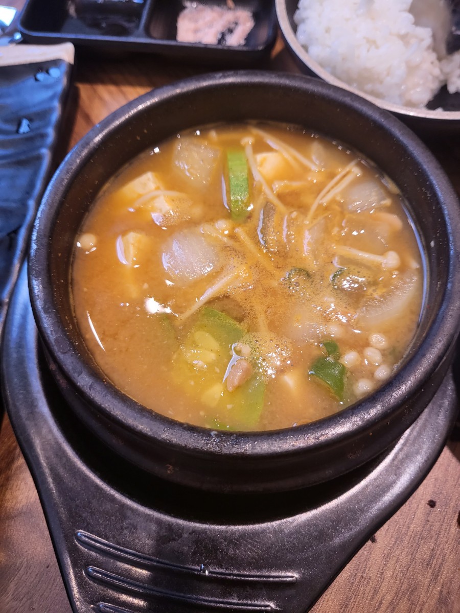 우리는 매콤한 된장찌개를 시켰다.