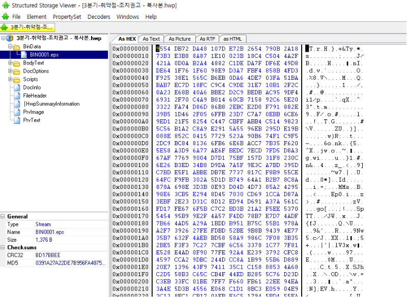 SSView에서 BIN0001.eps 파일을 추출해 분석해서