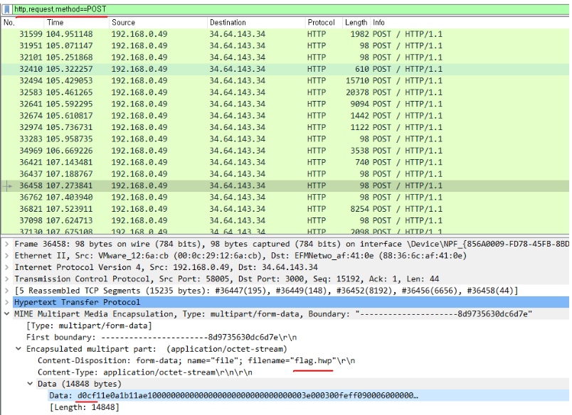 Data 라고 적힌곳에 맨 앞부분이 d0cf 로 시작하는걸로 보아