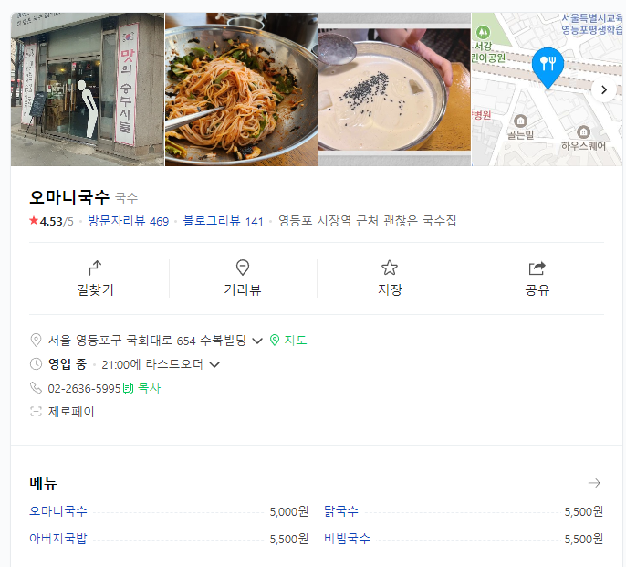 인근에서 평가가 좋은 오마니국수에 방문했다.