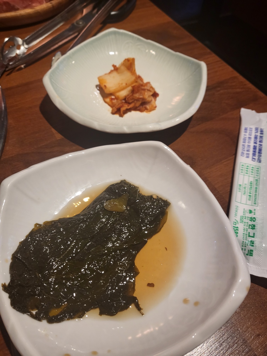무슨 나물인지 모르겟는데 명이나물 같은거 같다. 밑반찬은 평범하다.