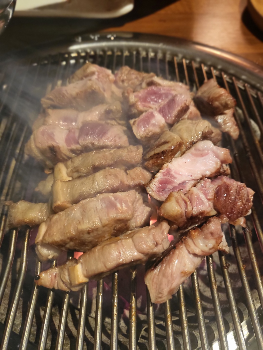 양갈비 살 부분 다먹고 뼈 부분은 직접 구워서 쪼끔 뜯어먹었다.