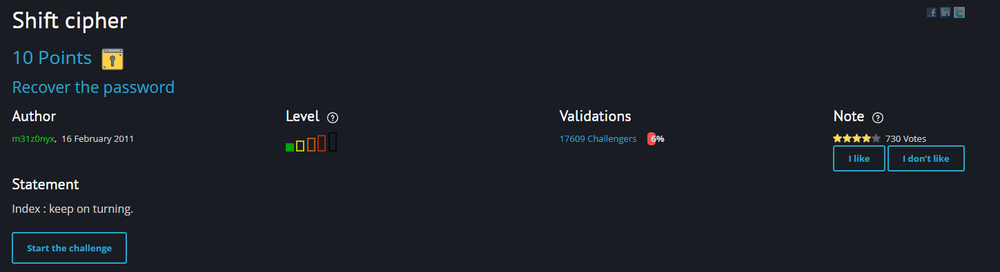 Shift cipher 이고 쉬운 난이도의 문제라