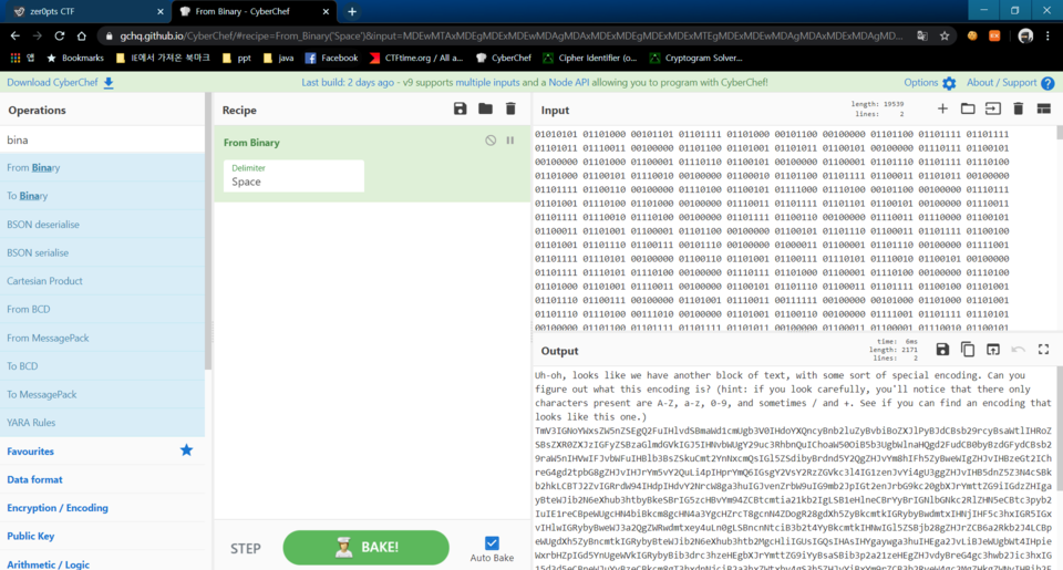 Cyberchef에 에 넣고 from binary 를 선택해서 보면