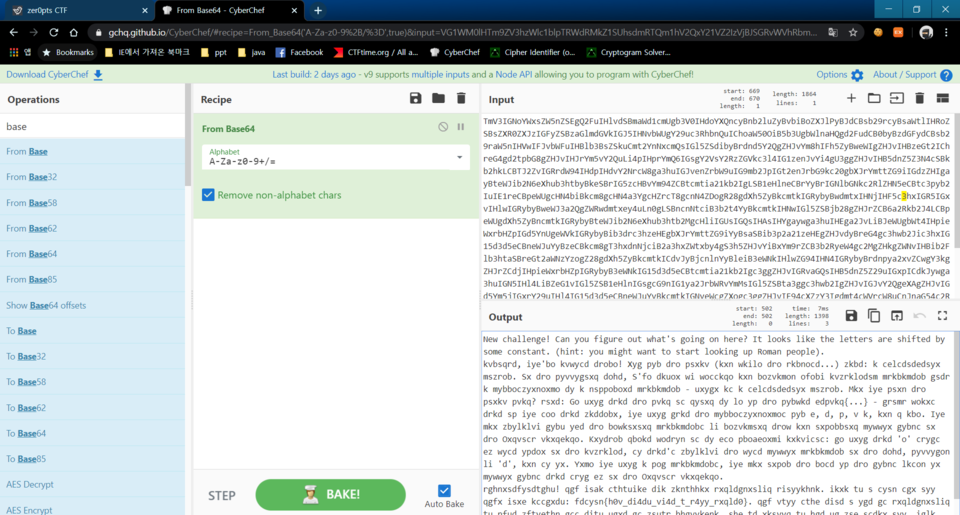 base64로 디코딩하면 이번엔 암호문이 튀어나온다.