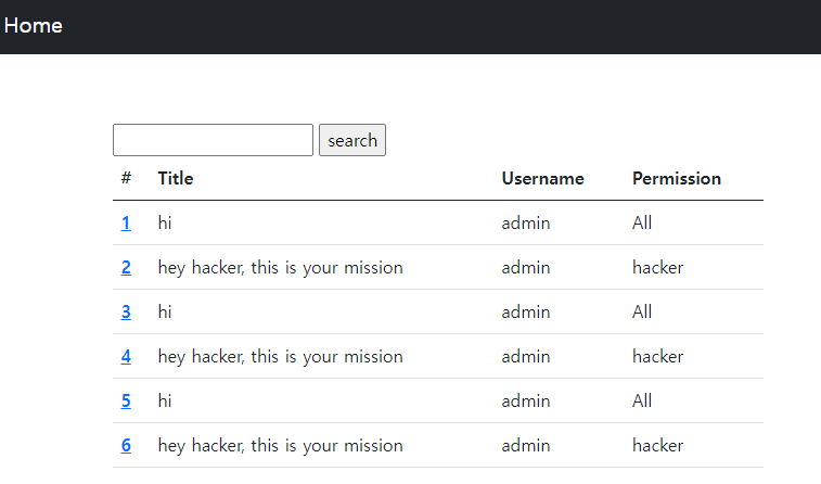 hacker 권한 게시물인 2, 4, 6번 게시글의 내용에