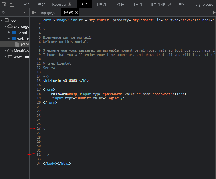 마찬가지로 26~32번째 줄 역시 주석으로 처리되어있는데 아무런 글자가 보이지 않는다.